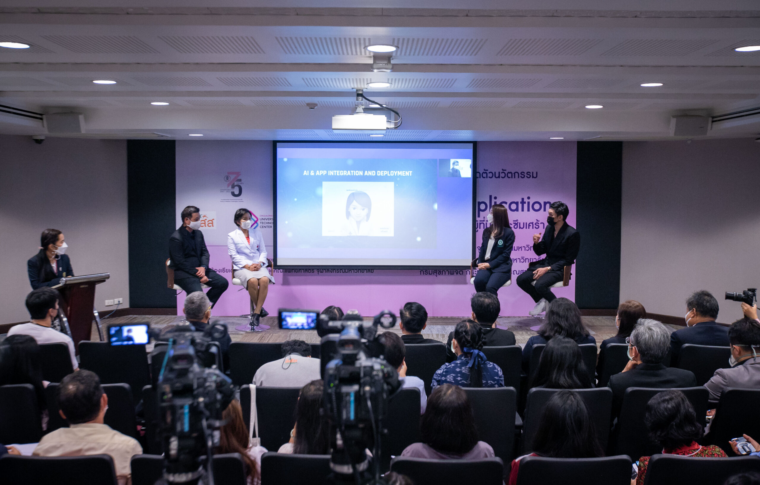 รศ.นพ.ฉันชาย สิทธิพันธุ์ คณบดี คณะแพทยศาสตร์ จุฬาฯ พร้อมด้วย พญ.อัมพร เบญจพลพิทักษ์ อธิบดีกรมสุขภาพจิต กระทรวงสาธารณสุข, พญ.วิมลรัตน์ วันเพ็ญ ผู้อำนวยการสถาบันสุขภาพจิตเด็กและวัยรุ่นราชนครินทร์, นายชาติวุฒิ วังวล ผู้อำนวยการสำนักสนับสนุนการควบคุมปัจจัยเสี่ยงสุขภาพ สำนักงานกองทุนสนับสนุนการสร้างเสริมสุขภาพ (สสส.), อ.ดร.ศันธยา กิตติโกวิท ผู้ช่วยอธิการบดีด้านนวัตกรรม จุฬาฯ, รศ.พญ.โสฬพัทธ์ เหมรัญช์โรจน์ ผู้ช่วยคณบดีด้านนวัตกรรมการศึกษาและสารสนเทศ คณะแพทยศาสตร์ จุฬาฯ, ศ.ดร.อนงค์นาฏ สมหวังธนโรจน์ รองคณบดีฝ่ายวิจัย คณะวิศวกรรมศาสตร์ จุฬาฯ และ รศ.ดร.พีรพล เวทีกูล อาจารย์ประจำคณะวิศวกรรมศาสตร์ จุฬาฯ ร่วมกันแถลงข่าวเปิดตัวนวัตกรรม DMIND Application สำหรับคัดกรองผู้ที่มีภาวะซึมเศร้า แอปพลิเคชันที่ช่วยให้ประชาชน สามารถประเมินความเสี่ยงของภาวะซึมเศร้าจากลักษณะการแสดงออกทางหน้าตา น้ำเสียง และข้อความ เพื่อประเมินภาวะซึมเศร้าเบื้องต้นให้บุคคลทั่วไปหรือผู้ป่วยโรคซึมเศร้าได้อย่างอัตโนมัติ และมีความถูกต้อง แม่นยำ ช่วยลดขั้นตอนในการวินิจฉัยของแพทย์ โดยมี คุณเตชินท์ พลอยเพชร (ดีเจมะตูม) เข้าร่วมงาน และ ผศ.ดร.ณัฐวุฒิ หนูไพโรจน์ ผู้อำนวยการศูนย์ปัญญาประดิษฐ์เพื่องานวิศวกรรม เป็นผู้ดําเนินรายการภายในงาน เมื่อเวลา 12.00 น. ณ ห้องเธียเตอร์ อาคารหอสมุด คณะแพทยศาสตร์ จุฬาฯ
