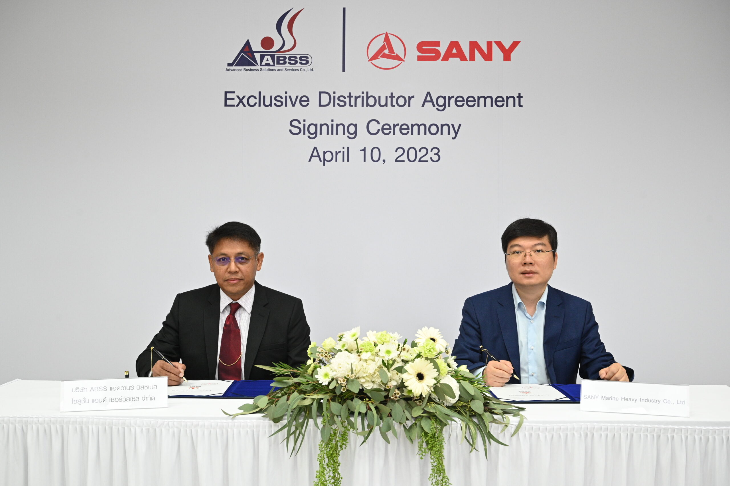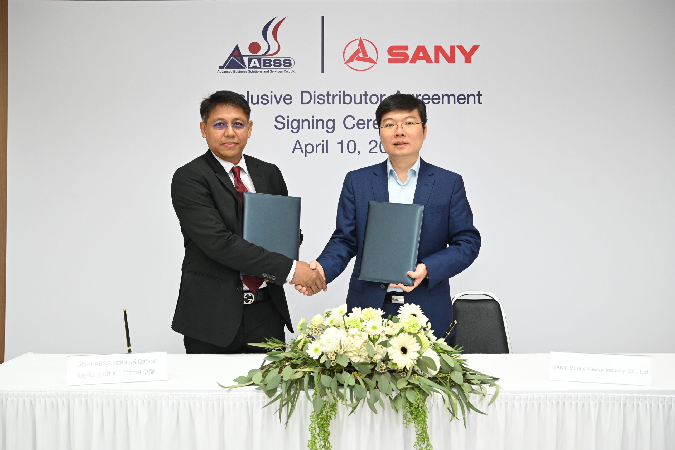 นายรณยศ เลี้ยงอำนวย รองประธานเจ้าหน้าที่บริหาร บริษัท แอดวานซ์ บิสซิเนส โซลูชั่น แอนด์ เซอร์วิสเซส จำกัด หรือ ABSS ลงนามในสัญญาร่วมกับ Mr. Tang Wei Bin General Manager International ของ SANY Marine Heavy Industry Co., Ltd. เพื่อเป็นพันธมิตรธุรกิจแบบ Exclusive Distributor จัดจำหน่ายผลิตภัณฑ์ Port Machinery อาทิ เช่น STS, RMG, และในส่วนเครื่องจักรขนาดเล็ก เช่น RTG, ReachStacker, Empty container handler, Forklift, Material han-dler, Telehandler, Mobile habour crane และ Terminal tractor นั้นมีให้เลือกทั้งระบบไฟฟ้าและดีเซล รวมทั้งจำหน่ายสายผลิตภัณฑ์เต็มรูปแบบของเครื่องจักรโลจิสติกส์อัจฉริยะ (Smart port) ของ SANY ในประเทศไทยแต่เพียงผู้เดียว ณ บริษัท ABSS ซอยสุคนธสวัสดิ์ 38 เมื่อวันที่ 10 เมษายน 2566 ที่ผ่านมา